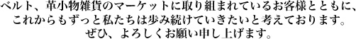 今の時代の感覚やトレンドを取り入れたデザインを、消費者にご満足いただける価格で提供できるよう、日々努力を続けています。圧倒的な種類のベルトを生み出してきた私たちの『 製品力 』が、必ずお客様のビジネスの力になります。